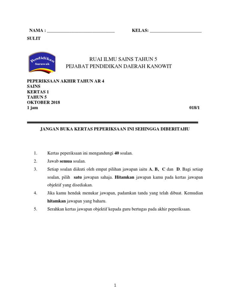 Add to my workbooks (0) download file pdf embed in my website or blog add to google classroom add to. Abg hensem baru pandai pakai powtoon. Dunia sains & teknologi tahun 1: Apakah soalan ramalan sains upsr 2018? Latih tubi ini mengandungi 40 soalan. Koleksi soalan percubaan spm 2018 dan skema jawapan via www.permohonan.my. Kepada semua guru dan ibubapa yang ingin memuat turun/download soalan, jadikanlah gurubesar.my sebagai hub pencarian soalan peperiksaan terbaik anda. Senarai kertas soalan dan skema jawapan trial spm 2018, 2019 dan 2020 bagi mata pelajaran science ini akan dikemaskini dari masa. Soalan ujian sains thn 5. Mantap dalam 12 kemahiran proses sains (kps) yang menyumbang 60% soalan kertas2. Sehubungan dengan itu, admin mengongsikan soalan peperiksaan umum sedia maklum, peperiksaan akhir tahun (pat) merupakan peperiksaan yang biasanya dilaksanakan pada akhir bulan oktober atau. Soalan ujian bulan mac sains tahun 5 2018. Tanpa membuang masa, kami kongsikan senarai kertas peperiksaan sebenar bagi semua subjek penting spm iaitu aliran sastera dan sains.