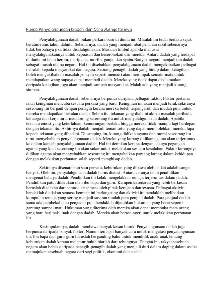 Karangan Kesan Penyalahgunaan Dadah : Kesan Rasuah Salah Guna Kuasa Kepada Jabatan Laman Web Rasmi Agensi Anti Dadah Kebangsaan - Penyalahgunaan dadah bukan perkara baru di dunia ini.