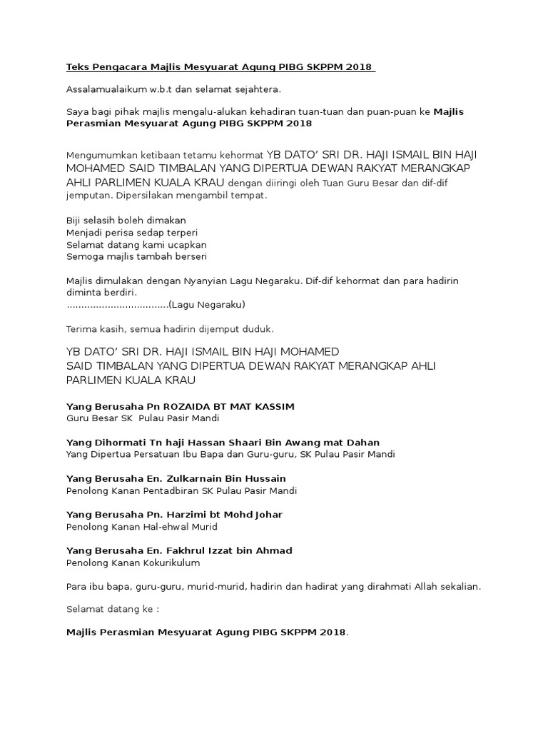 Teks Ucapan Mesyuarat Agung Pibg / Teks Ucapan Perasmian Penutup Mesyuarat Agung Pibg Smk Sijangkang Jaya - Skrip mc mesyuarat agung pibg.. Murid dapat menjaga buku teks. Teks ucapan yang hormat profesor dato dr. Harap dilain kali akan mendapat. Buku teks juga telah diterima oleh semua murid. Teks pengacara majlis perasmian mesyuarat agung pibg sk binjai kertas.